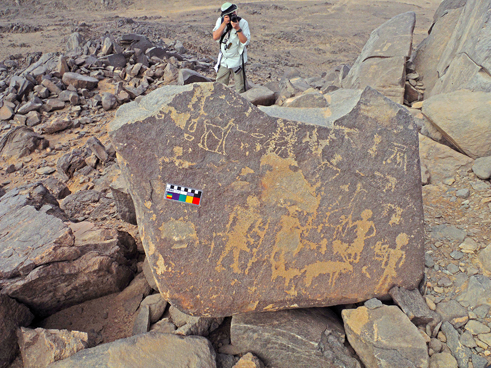 قبل تحليل وتفسير تلك النقوش الحجرية لابد من دراستها أولاً في سياقها الأثري. هناك ثلاثة انواع من النقوش الحجرية بالوادي. أولاً، تلك النقوش المعروفة باسم “النصوص التاريخية”، والتي ينقشها كتبة مُدربون تدريبًا جيدًا. غالبًا ما تتضمن اسم الملك، وأسماء كبار الموظفين، والبيانات الرسمية الخاصة بالبعثة الاستكشافية، توجد تلك النقوش التاريخية بأماكن مرئية لجميع رواد المنطقة، مثلًا على جانبي الممرات والطرق، وعلى واجهات أو مداخل المناطق، وعلى كتل حجرية أو تلال ظاهرة. ثانياً، هناك تلك النقوش التي حفرها الجنود بالقرب من مواقع حراستهم (انظر أعلاه). وأخيراً، هناك الرسومات والأسماء التي تم حفروها داخل الغرف التي كان يشغلها أعضاء البعثة التعدينية في المعسكرات. غالبًا ما تكون هذه النقوش على الجدران الداخلية التي لا يراها أحد ما لم يدخل الغرفة. سيكون من المستحيل تفسير مثل تلك النقوش خارج سياقها المادي سيكون على فريق بعثة وادي الهودي مهمه دراسة مساحات المعسكرات، والاشياء الموجودة بالمواقع، وبقايا القمامة التي تركها واستخدمها الأشخاص الذين عاشوا وعملوا في تلك البعثات.