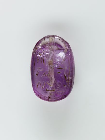 يوجد كذلك الجمشت بشكل شائع بمدافن الدولة الوسطي، وهو ما يعكس درجة الهوس به خلال تلك الفترة. فمن المثير للاهتمام أنه كلما كانت درجة اللون أغمق، كلما زادت قيمة القطعة. اشتهر حجر الجمشت ايضًا بخصائصه السحرية في مصر القديمة، وارتبط بالجنس والحب في الأرض وفى الحياة الأخرة. تنص تعويذة سحرية تُعرف باسم نص التوابيت رقم 576 على ” بالنسبة لأي رجل يعرف هذه التعويذة، فأنه سيمارس الجنس في هذه الأرض ليلًا أو نهارًا، وسيملك قلب المرأة المستلقية أسفله عندما يمارس الجنس معها” ومن أجل تفعيل هذه التعويذة يجب على الشخص أن “يقف فوق خرزة من العقيق أو الجمشت، وتوضع على الذراع الأيمن بالنسبة للمتوفي”. هذه الصورة ملكية عامة متوفرة بمتحف المتروبوليتان للفنون بنيويورك.