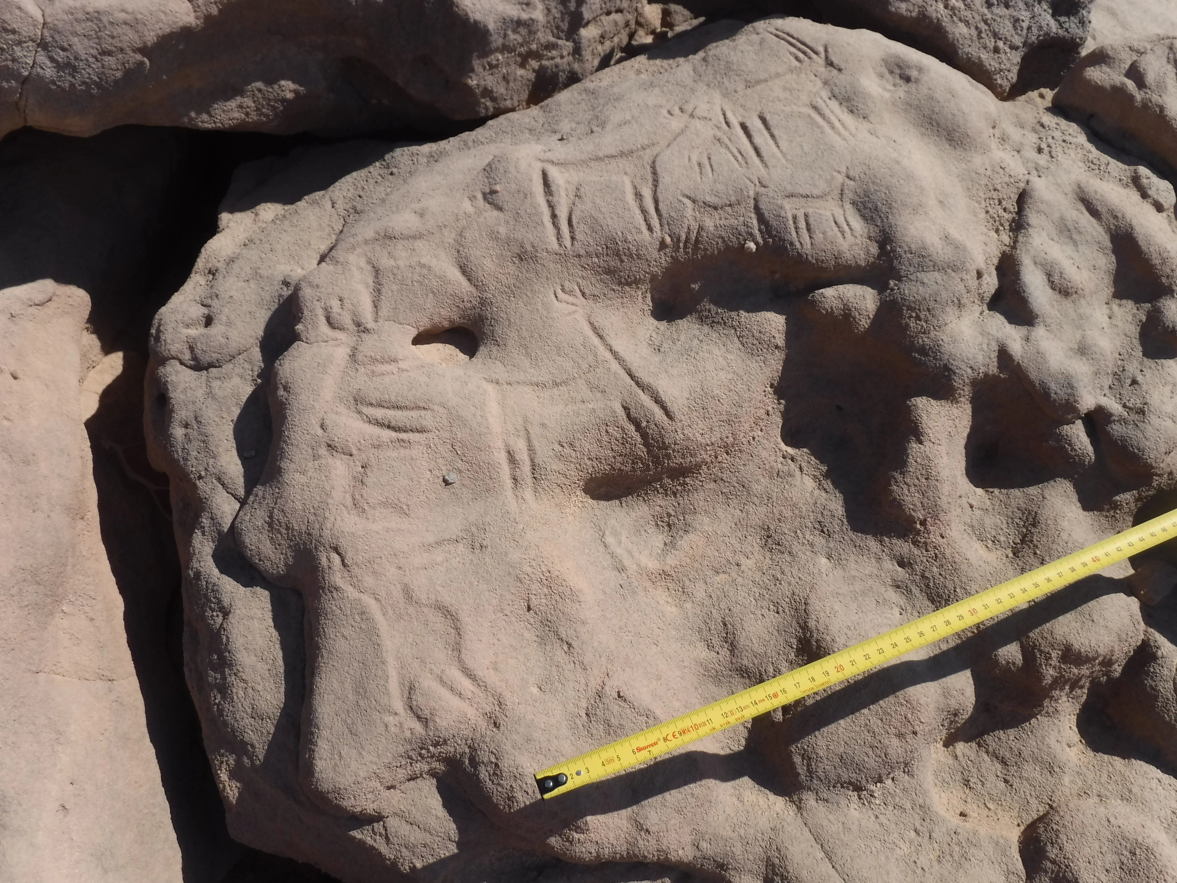عندما قدمنا إلى الموقع 51 في يناير 2023 ظننا أننا أول من اكتشف هذا الموقع لأن أحمد فخري لم يذكره، كما لم يذكره غيره. ومع ذلك سرعان ما تفاجأنا عندما علمنا أن الموقع كان في واقع الأمر قد اكتُشف في ثلاثينيات القرن العشرين. كان المستكشف والدبلوماسي الألماني هانز-يواخيم فون دير إش أول من زار الموقع 51 كما سجل في كتاب رحلاته بعنوان “Weenak – die Karawane ruft”. عندما هبت عاصفة غير متوقعة، لجأ هو وفريقه من المرشدين البشاريين إلى الموقع 51 لمدة يومين حيث سجل نقوشه الصخرية الكثيرة. وفي الواقع ربما كانوا هم نفس الأشخاص الذين حفروا نقشين بالكتابة العربية بتاريخ عام 1938. ومع ذلك لم يكونوا بأي حال من الأحوال أول من عاش هناك.