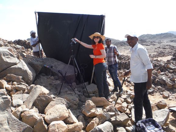 الطريقة الأخرى هي أن يقوم الشخص بـ”نقر” النقش، أو طرق الحجر في نفس النقطة مرارًا وتكرارًا حتى يتم تقشير جزء من السطح بما يكفي لتشكيل الصورة. كلتا الطريقتين تمثلان نوعان مختلفان من التحدي عند تسجيل النقوش. في بعثة وادي الهودي، قمنا باستخدام التصوير بالأشعة المنعكسة لتوثيق وتسجيل النقوش الموجودة على الصخور المحيطة بالموقع وفي الصحراء، بالإضافة إلى تلك النقوش الموجودة على القطع الأثرية واللوحات التي تم العثور عليها أثناء المسح الأثري والحفائر. التصوير بالأشعة المنعكسة، هي تكنولوجيا حديثة قامتمؤسسةتصويرالتراثالثقافي بتطويره. تلك التقنية تستخدم سلسلة من الصور يتم أخذها من نفس المنظور باستخدام زوايا إضاءة مختلفة. بعد ذلك، يقوم برنامج التصوير بالأشعة المنعكسة بعمل نموذج “انعكاسي” للسطح الذي تم تصويره.