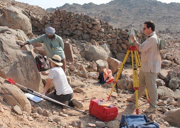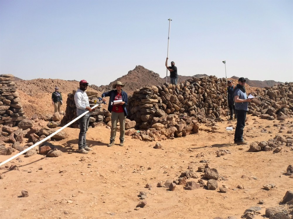 منذ بداية بعثة وادي الهودي الاثرية ونحن نتبنى طرق المسح الأثري التي تؤهلنا من تحقيق أهدفنا في عمل توثيق ثلاثي الأبعاد للآثار والمساحات المحيطة بالمنطقة. باستخدام توتال ستايشن أو جهاز قياس المواقع والأبعاد المعمارية من نوع LEICA، قمنا بقياس وتحديد مواقع معظم الآثار المعمارية، القطع الأثرية، مناطق الحفائر، والنقوش والنصوص المحفورة بكل موقع أثري بالوادي. التوتال ستايشن أو الوحدة الشاملة هو جهاز بصري إلكتروني يقيس الانحدارات والارتفاعات والمسافات لنقاط متواجدة في المجال المحيط بموقع الجهاز. تمكننا قراءات هذا الجهاز من عمل خرائط ونماذج مفصلة للمواقع الأثرية. بالإضافة إلى ذلك، تمكننا من تخطيط مجموعة من الخطوط المتقاطعة مع قياسات مساحية حول وادي الهودي تم توثيقها بدقة على الخرائط من قبل، وبذلك استطعنا إمداد منظم الإحداثيات المستعرض العالمي ميركاتور (UTM) بإحداثيات جميع المواقع الأثرية المُكتشفة حتى الآن، مما يتيح تغذية تلك المعلومات في أي نظام معلوماتي جغرافي. مما يعني أنه يمكننا وصف أماكن تلك المواقع بدقة ونقل تلك المعلومات للجمهور الأكاديمي أو الحكومي المعنيّ.